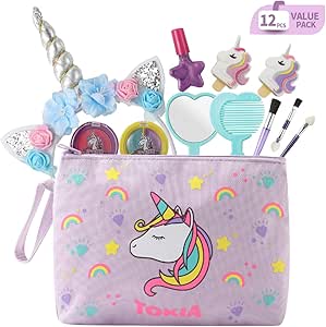 Amazon Com Kids Makeup Kit For Girls Real Kids Cosmetics Make Up Set With Cute Unicorn Cosmetic Bag Nail Polish Eyeshadow Lip Gloss Blush Washable Play Makeup For Little Girls Xmas Birthday Gift Beauty
