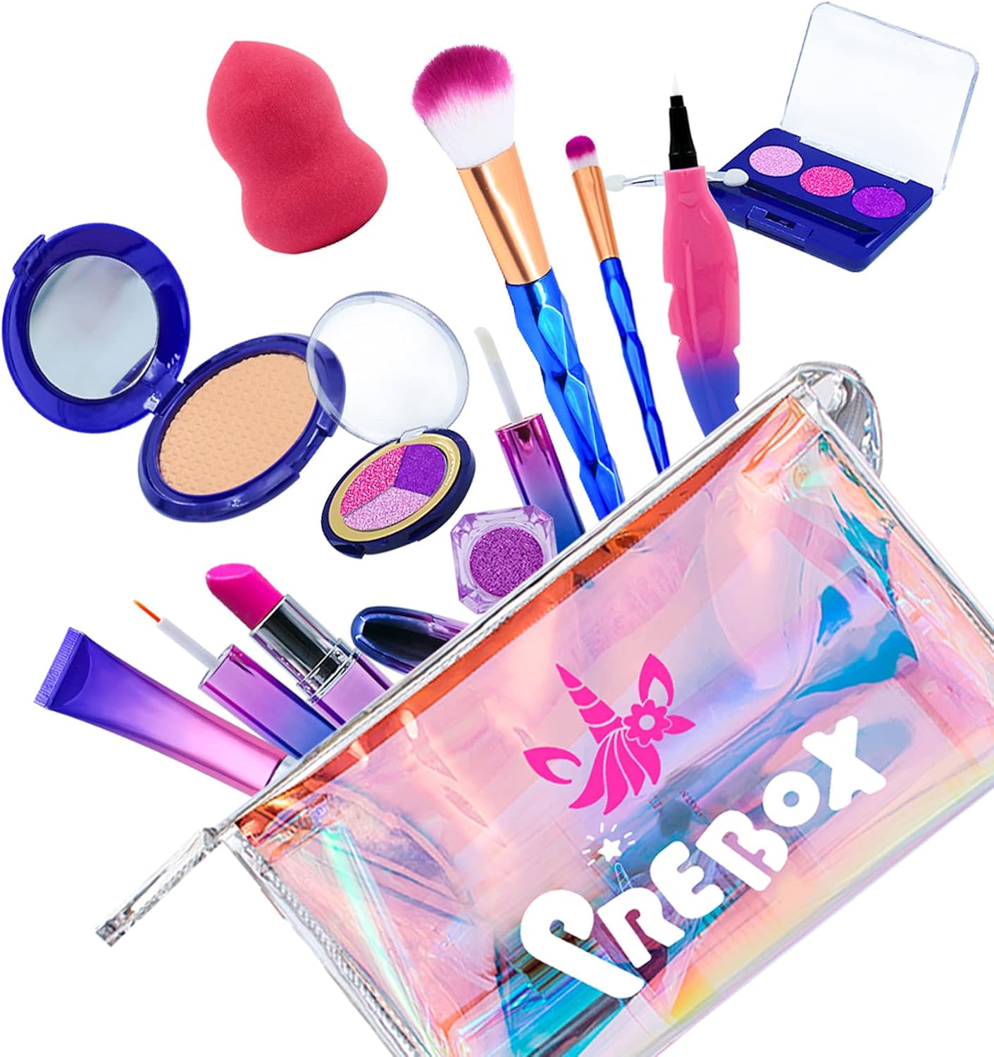 Amazon Com Prebox Kids Pretend Play Makeup Kit For Little Girls Toddler Make Up Set Unicorn Birthday Gift For Girls Age 2 3 4 5 6 Years Old Not Real Toys Games