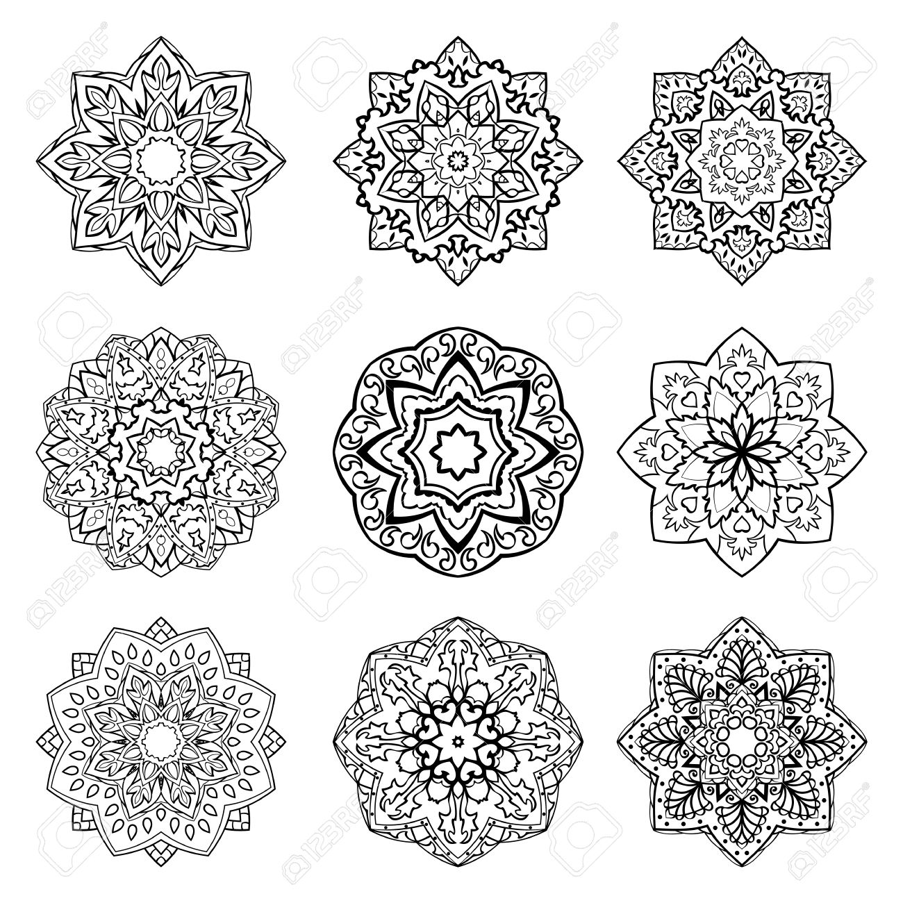 Set Of Mandalas Collection Of Stylized Stars And Snowflakes Vector Round Ethnic Ornaments Template For Embroidery Sketches For Henna Tattoo Simple Design Elements Royalty Free Cliparts Vectors And Stock Illustration Image 53447546